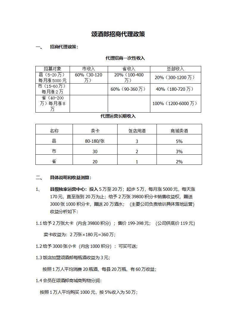 颂酒郎招商代理政策