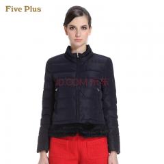 Five Plus新女春装兔毛皮草拼接立领长袖羽绒服外套2135331290 黑色090 XS