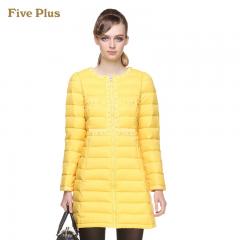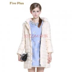 Five Plus新女春装拼接连帽长袖中长款宽松羽绒服外套2135332010 米白010 XL