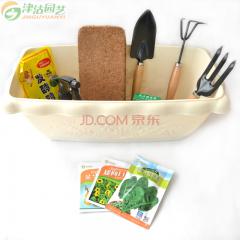 津沽园艺 家庭种花种菜套装 含环保树脂大花盆+椰砖+发酵鸡粪肥+喷壶+铲锹耙工具+种子1套