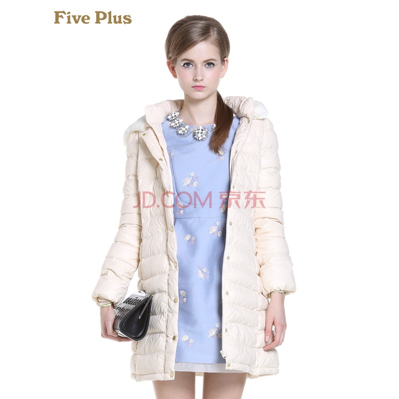 商品名称:Five Plus新女春装拼接连帽长袖中长款宽松羽绒服外套2135332010 米白010 XL