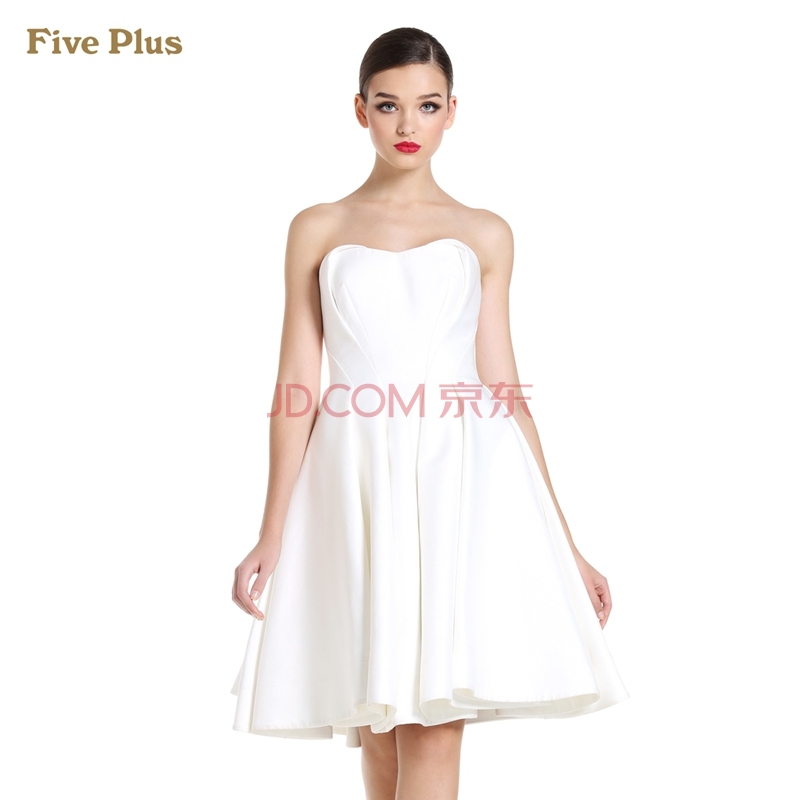 商品名称:Five Plus新女春装纯色修身高腰抹胸连衣裙小礼服2144086120 米白010 M