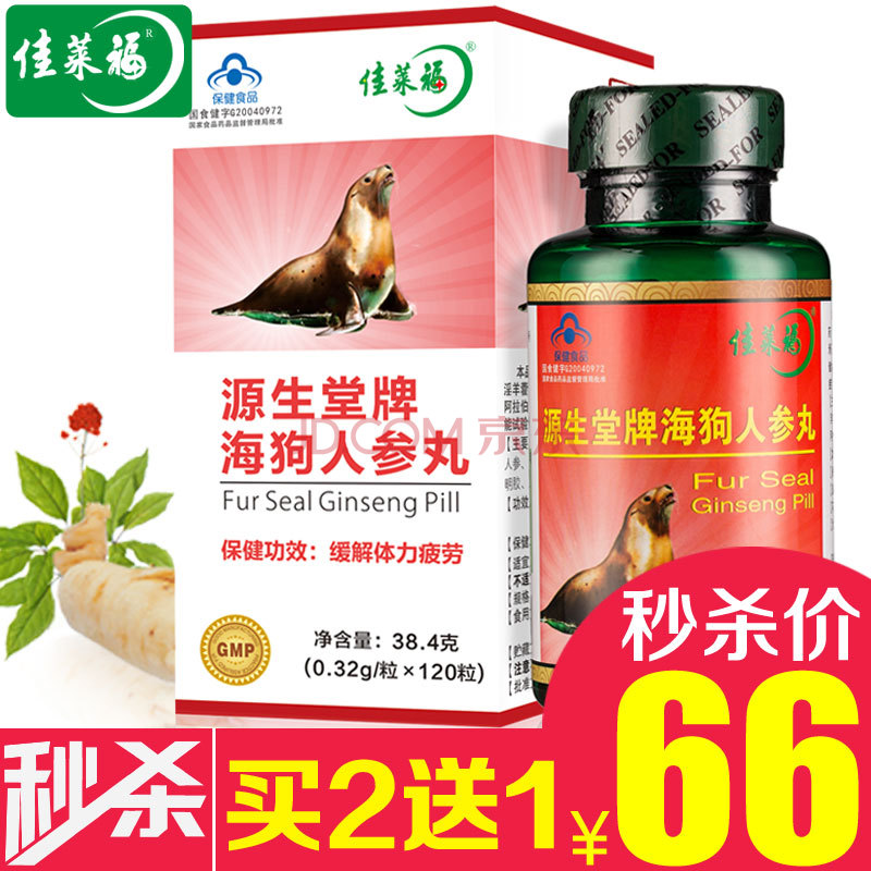 商品名称:【买2送1】夜夜惊喜 佳莱福源生堂牌海狗人参丸120粒 大瓶装 重塑雄风 硬!挺!尖叫!!