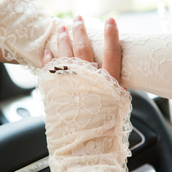 商品名称:玛丽贝尔(MARYBEYER)夏季防晒手套 开车防滑紫外线女式薄长款遮阳蕾丝春天户外骑行 浅米色